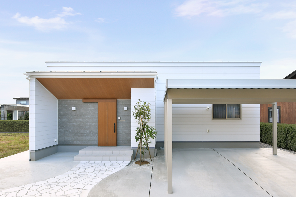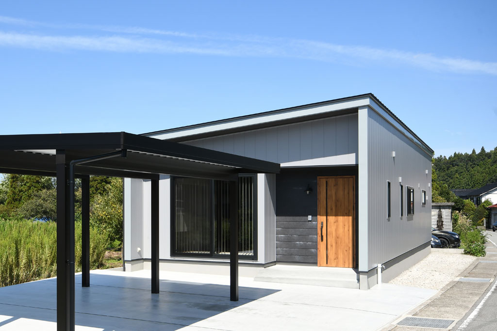 スタイリッシュな外観の平屋住宅。