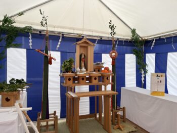 お施主様ご家族の末永いご多幸と、工事の無事。祭壇に捧げられた神器に、改めてその誓いを立てた一日でした。