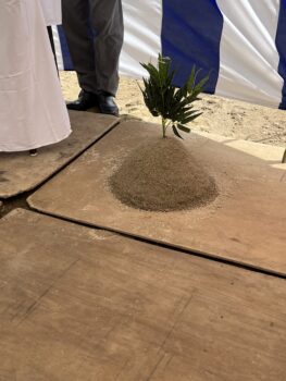 地鎮祭の儀式の中に、盛り砂に立てた草を木の鎌で刈る「刈り初(そ)めの儀(かりぞめのぎ)」があります。