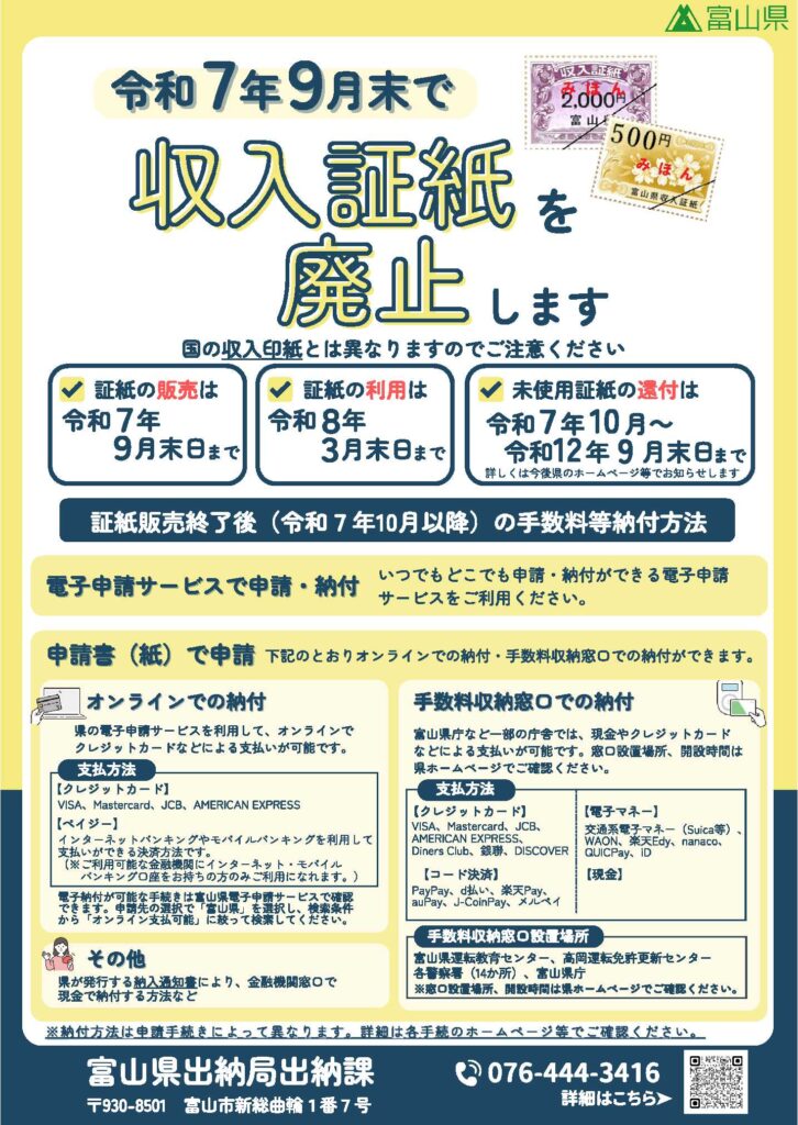 富山県収入証紙の廃止 2025.09.22