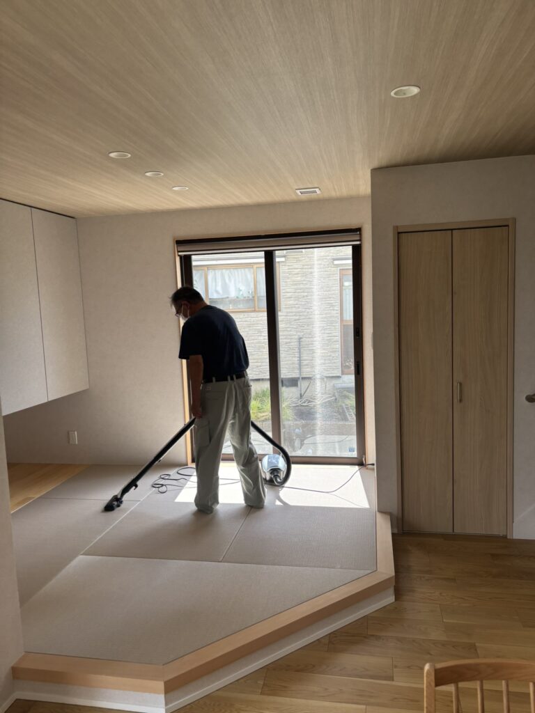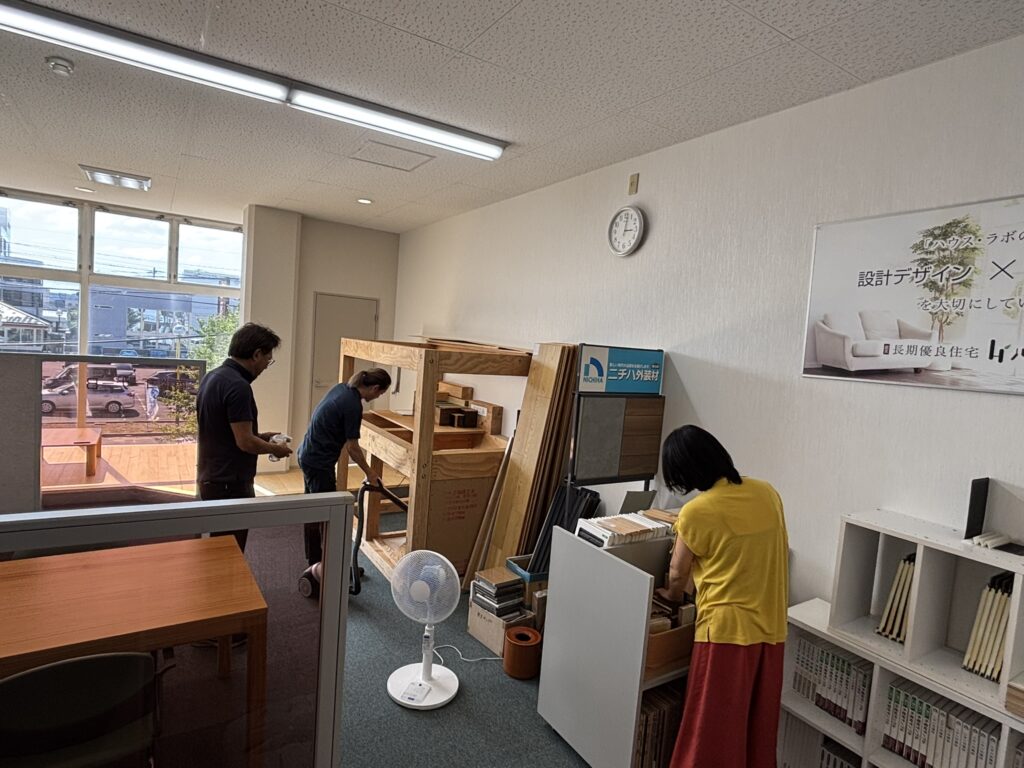 8日の午後からはスタッフ全員で分担し、モデルハウスや事務所の窓拭き、床掃除、見本カタログの整理までしっかりと。