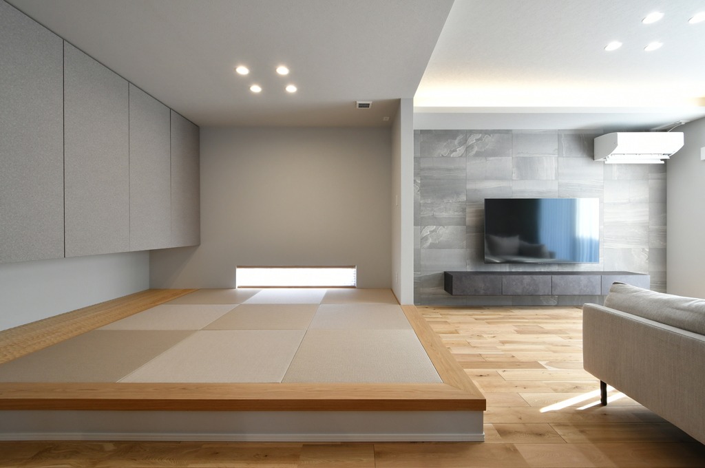 LDKに畳の小上がりスペースを設け、圧迫感の少ない吊押入れを設置しました。