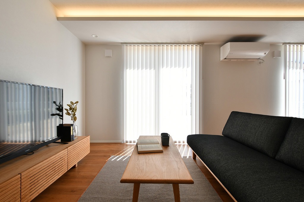 広々としたリビングは、天井からの間接照明の