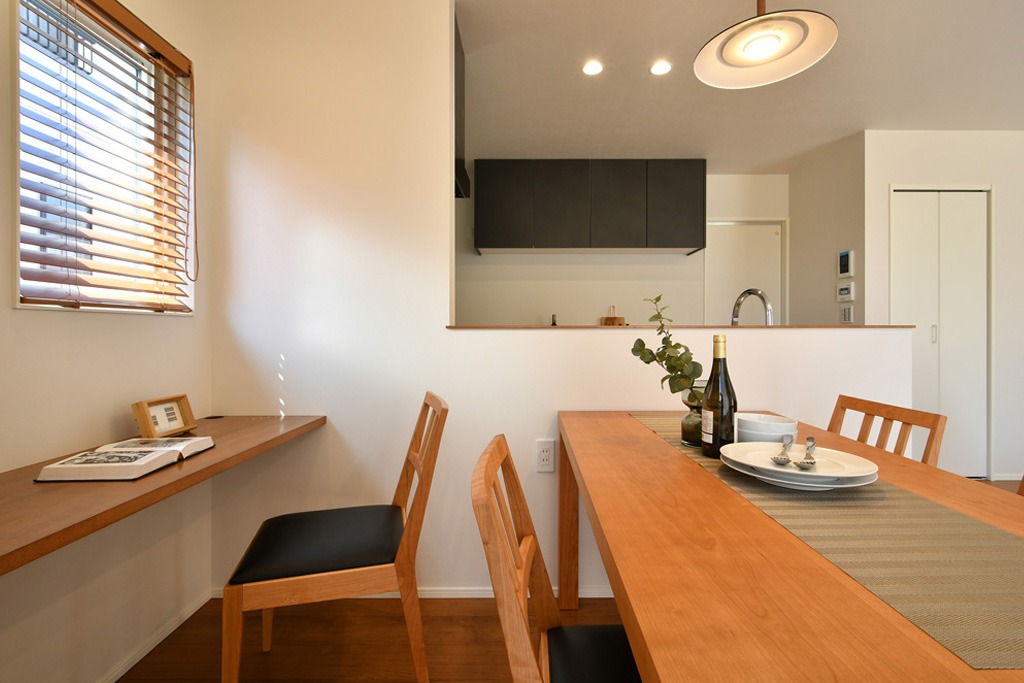 ダイニング背面にワークスペースを設け、勉強やリモートワークに最適な環境。