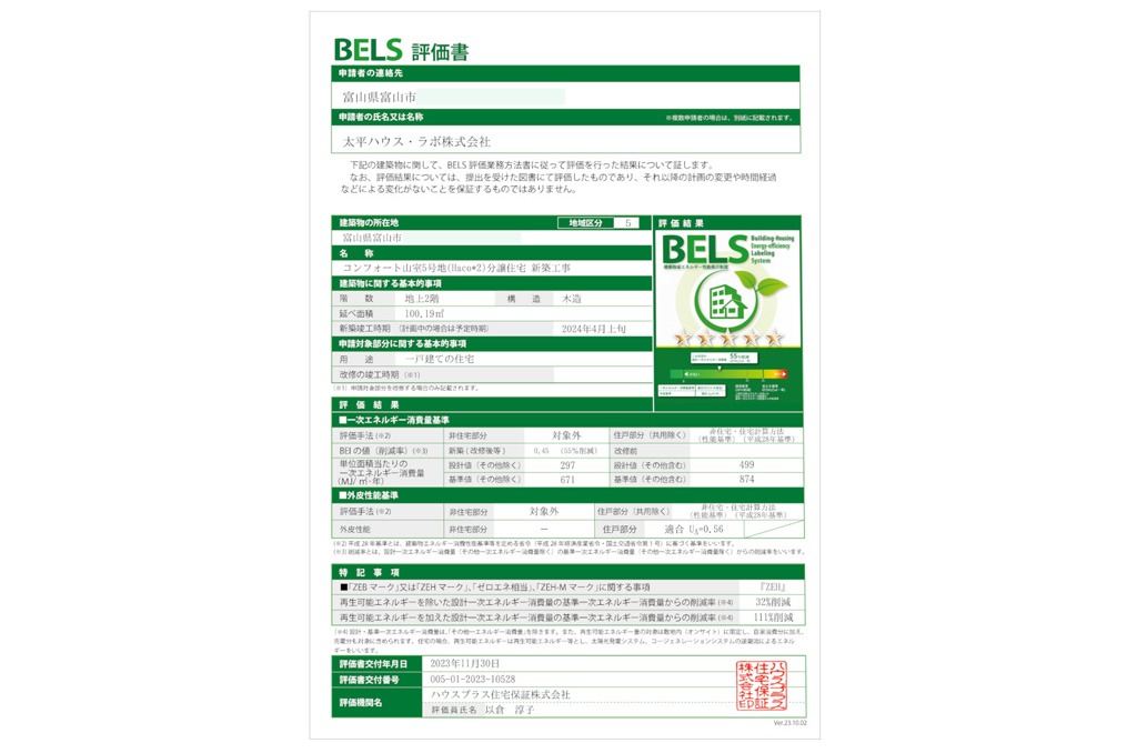 BELS評価で5つ星の最高を取得。